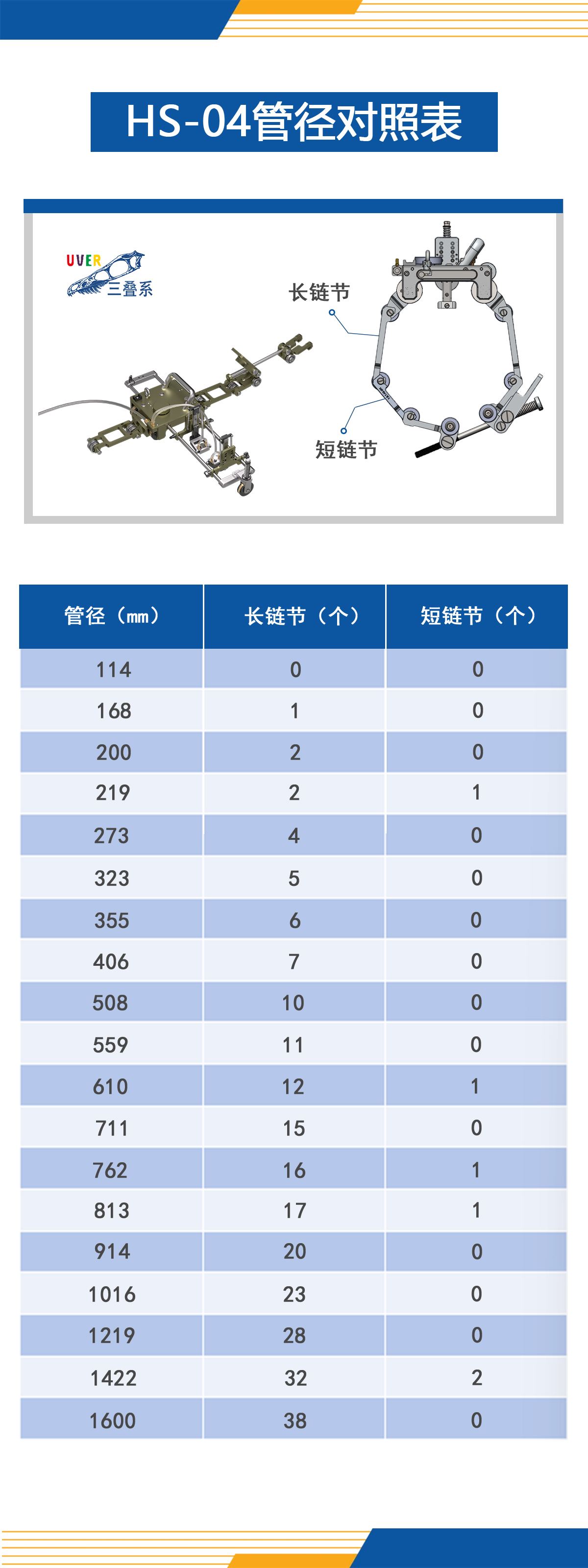 标准链节: 148x66x32mm标准轨道单节 链条,轻质(0.22KG/节)坚固 可靠。可通过增减链条数量实 现管径的自由且快速调节。 |