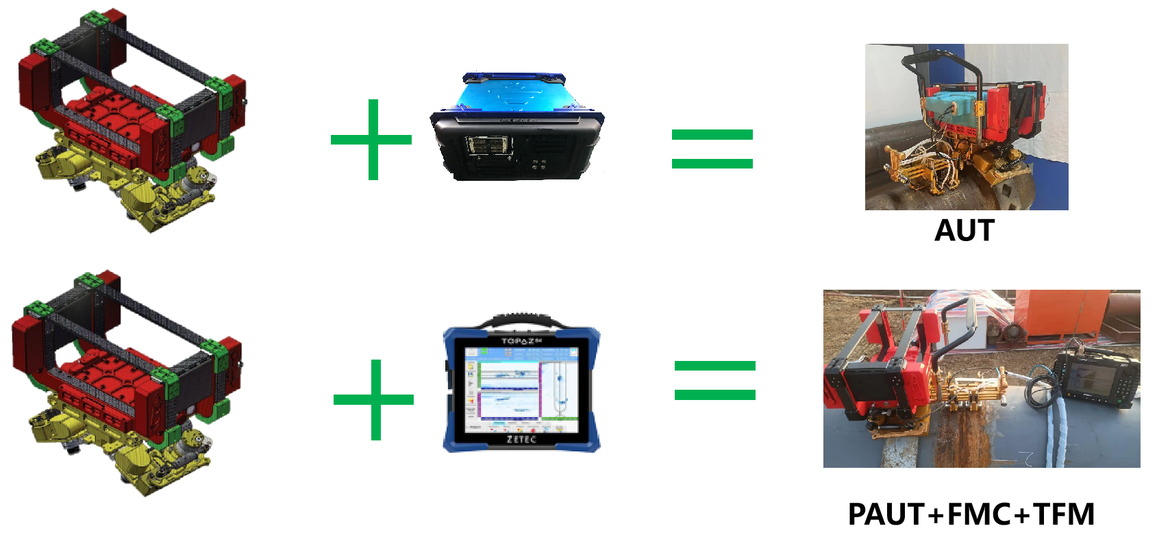 无线传输与控制,没有沉重的电缆 支持 AUT、TUT、PAUT、ART、AVT 包括两个更强大的驱动轮 无线手动控制器 数据分析和报告 支持北斗定位和 GPS 定位 匹配多种检测设备 更高的集成度,周向尺寸较小 整体重量较轻,更均匀的载荷 适应更多种类的仪器 更便于更换曲率板 数据服务器, 支持远程多点 |